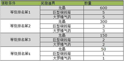 【等级冲榜赢大礼】开服第六天开启,持续1天时间,活动截止时玩家达成等级目标或者等级排名均会获得丰厚奖励返还。