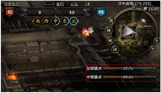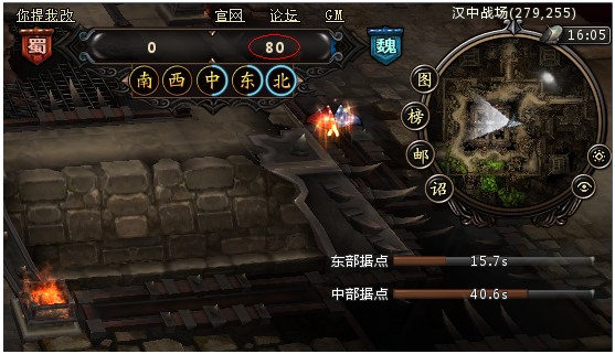汉中战场最多为40人的同时参与的PVP活动,活动开启期间可以报名参加,进入战场后,系统会根据玩家战斗力分配到蜀魏阵营的其中一方