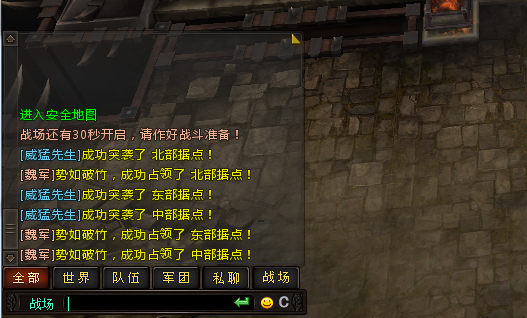 战场中设有“战场”聊天频道,方便于同阵营方玩家之间的交流,商讨战术
