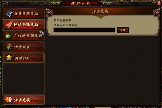 点击游戏右上角的“活动”按钮可打开奖励大厅面板: