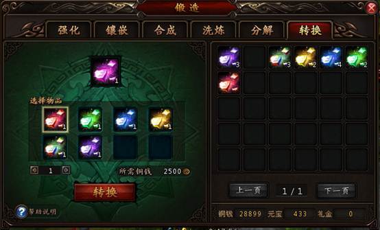 在游戏中玩家经常会获得宝石,而有些宝石的属性并不是自己所需要的,这是需要用到宝石属性转换功能。