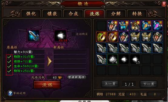 玩家可以通过洗炼系统对装备属性进行洗炼;