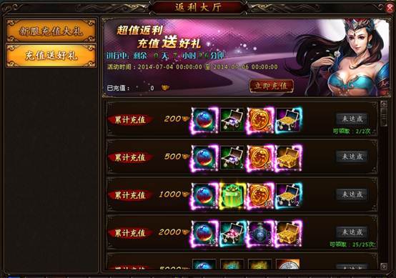 在活动期间内,只要玩家充值,就可以领取对应档次的奖励。