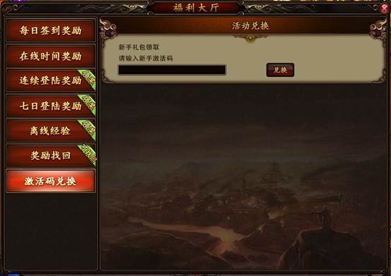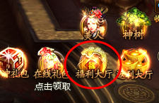 游戏内玩家每累计在线达到一定时间时,即可获得一次摇奖机会,共四次,分别为:“铜钱”、“韬略”、“礼金”、“商城道具”。