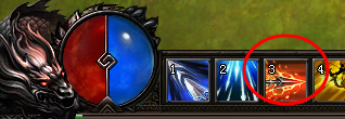 当前正在使用的技能,图标的显示是亮的。点击另一个显示为暗色的技能图标就可以切换使用。